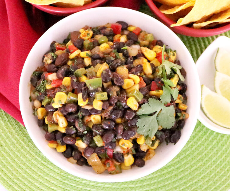 In a salad bowl add the black beans, corn, mango, peppers, onion, cilantro, raisins and the dressing.