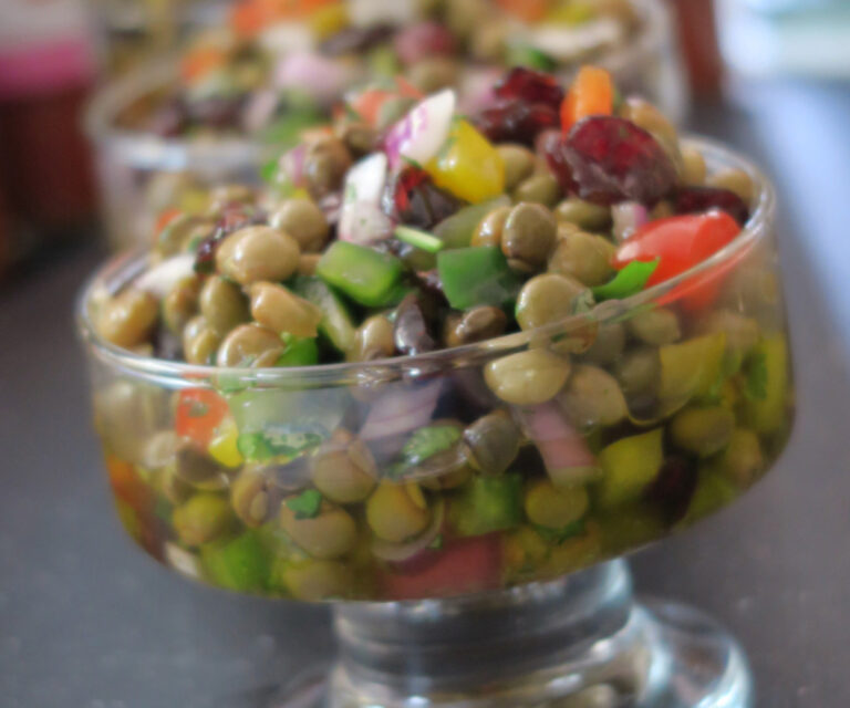 En una ensaladera echa los gandules y el resto de los ingredientes y sazona al gusto. Deja en el refrigerador hasta el momento de servir.