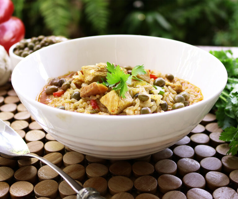 Añade el arroz y gandules, sazona al gusto, tapa y cocina a temperatura mediana por 20 minutos.