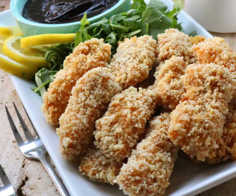 Los chicharrones triturados pueden ser sustituidos por panko o galleta export soda triturada. Recordando que dependiendo del ingrediente que utilices para empanar ya sea el chicharrón, panko o galletas export soda quedarán con un sabor diferente e igual la textura.