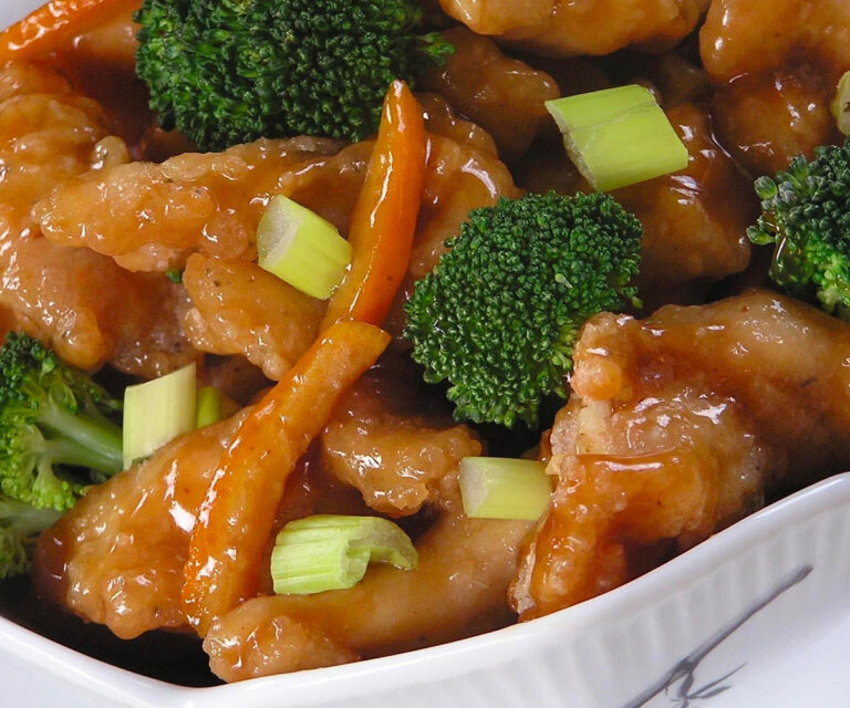 In a large skillet or wok heat a drizzle of corn oil, add the chopped broccoli and sauté for a few seconds. Add the breast fillets, sauce and sauté for two to three minutes.