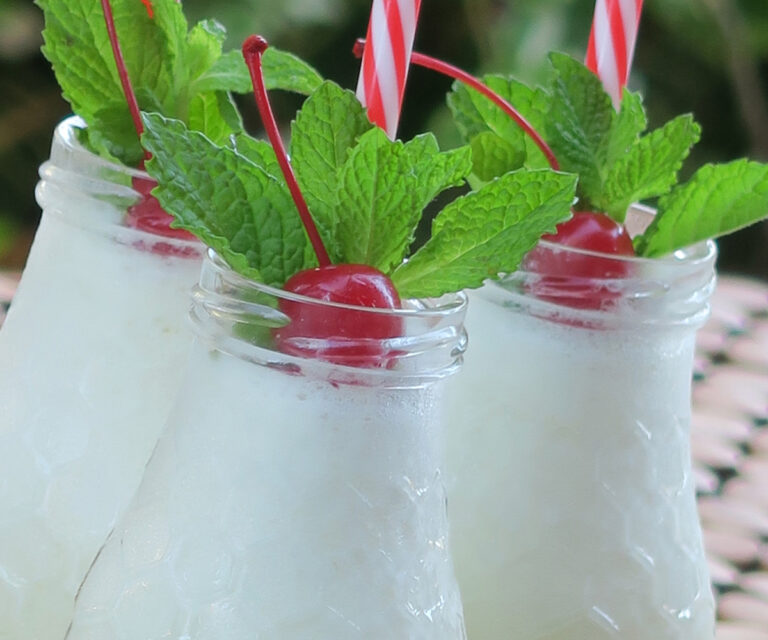 - Sirve y decora con un trocito de piña y una cereza.