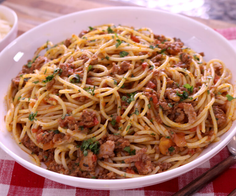 SPAGHETTI WITH MEAT SAUCE AND PORK SAUSAGES